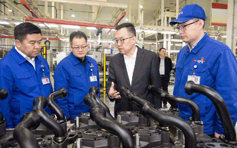 From February 21st to 23rd, Wang Zhijian, Secretary of the Party Committee and Chairman of Shandong Heavy Industry Group, visited the production lines of Weichai and China National Heavy Duty Truck Group to conduct on-site research on the resumption of work and production and safety production after the Spring Festival. He also extended New Year greetings and sincere wishes to the employees who remained at their posts. He emphasized the need to adopt a proactive and responsible attitude, going all out to boost production, ensure delivery, and improve efficiency to achieve a "good start" in the first quarter and lay a solid foundation for high-quality development in 2026.