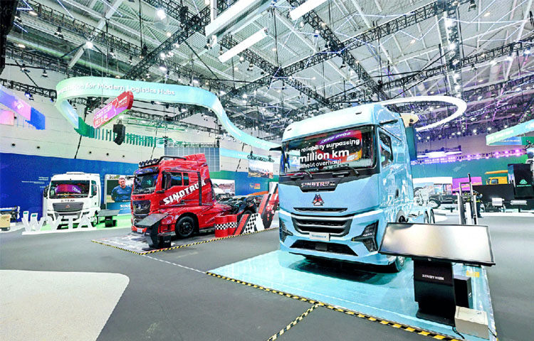 During the event, Sinotruk also held a product exhibition, focusing on seven core application scenarios: end-to-end logistics, infrastructure, mining, integrated logistics, comfortable living, specialized operations, and new energy. The exhibition showcased a variety of models, including tractors, dump trucks, and pickup trucks, as well as key assemblies and components such as engines, transmissions, and electric drive axles.