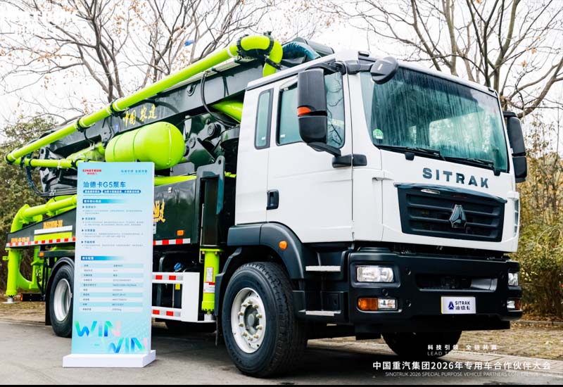 This leadership was vividly demonstrated at the 2026 Sinotruk Special Vehicle Partner Conference. At the conference, Sinotruk showcased several flagship models, with the Sinotruk G5 pump truck becoming a focal point, perfectly embodying Sinotruk's product philosophy of "deeply adapting to various scenarios." This vehicle is equipped with a dedicated MC07.29-61 high-efficiency engine calibrated with a special pump truck program. It not only boasts strong power but also achieves precise fuel consumption optimization, truly balancing product strength and economy. Through meticulous lightweight design, the chassis curb weight is as low as 5800kg. While creating a compact body, it can accommodate a 38-meter boom, easily meeting the operational needs of a "small size, large span." Behind this lies Sinotruk's ultimate interpretation of the word "specialized"—not simply a "superstructure + chassis" assembly, but a deep dive into the core of the scenario, optimizing from power output and structural design to control logic across all dimensions, allowing the product to resonate with the needs of the scenario.